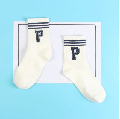 Cotton Mid-Calf Socks with Stripes and Letters